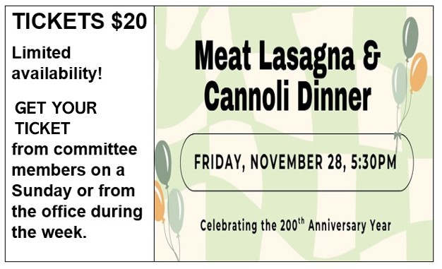 Anniversary Lasagna and Cannoli Dinner (tickets $20)