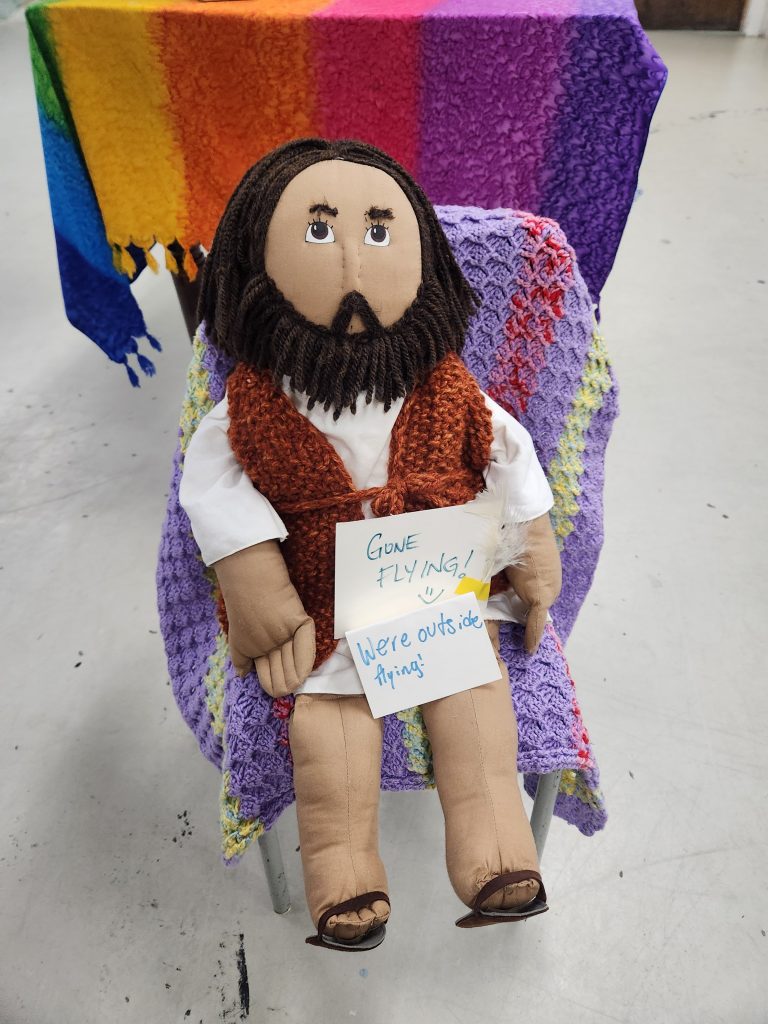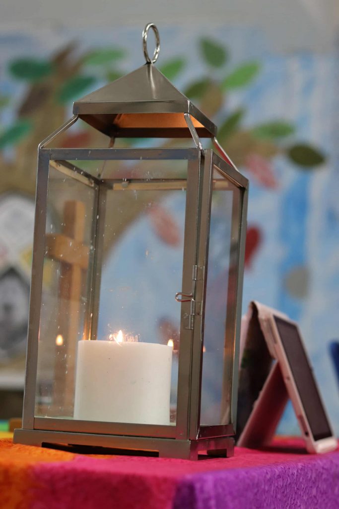 Then a Kid’s Church adult or child/ youth will light our lantern and head downstairs.