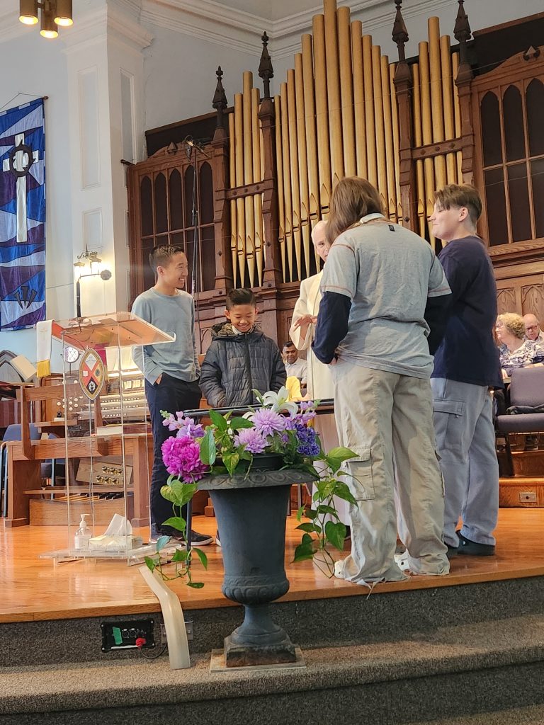 It starts with Rev. Dr. Steven Davis inviting the kids in the early part of the service to participate in a section of the service. This is not mandatory for children or youth to participate in. Just a fun way to include them in the service before heading downstairs.